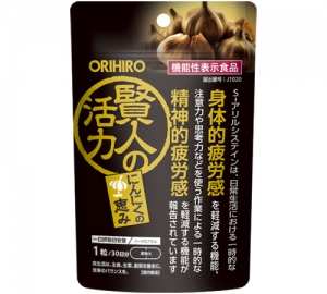 ニンニクに含まれる、S-アリルシステインによる『日常生活における一時的な身体的疲労感を軽減する機能』、『注意力や思考力などを使う作業による一時的な精神的疲労感を軽減する機能』を表示したハードカプセルタイプの機能性表示食品です。