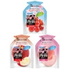 りんご味:果汁21%、さくらんぼ味:果汁(さくらんぼ、りんご)6%(佐藤錦果汁1.8%使用)、白桃味:果汁(もも、りんご)23%配合。果汁感たっぷりの美味しく手軽なプチサイズの蒟蒻ゼリーです。