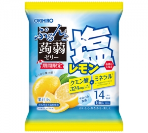 本品は、クエン酸や汗などで失われやすい塩分を配合した、プチサイズの蒟蒻ゼリーです。赤穂の天塩使用。塩気が気になりにくいレモン味のゼリーですので、どなたでもお召し上がり頂けます。夏場などの塩分補給にお役立てください。